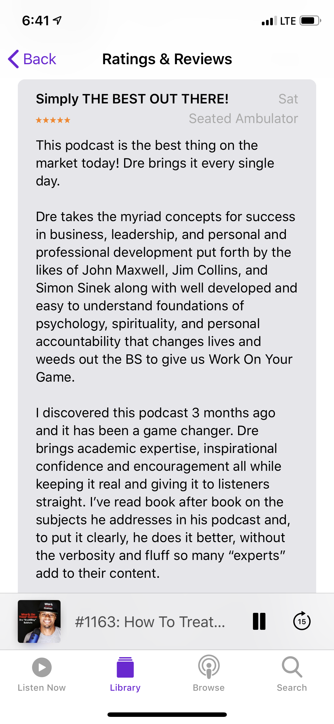 I just want to thank you again for all that you do to help people like me going through shit with their lives. You have another fan and I will be buying more of your books in the future. All I listen to when doing cardio are your podcasts to try and learn as much as I can. But, for real, keep doing you.